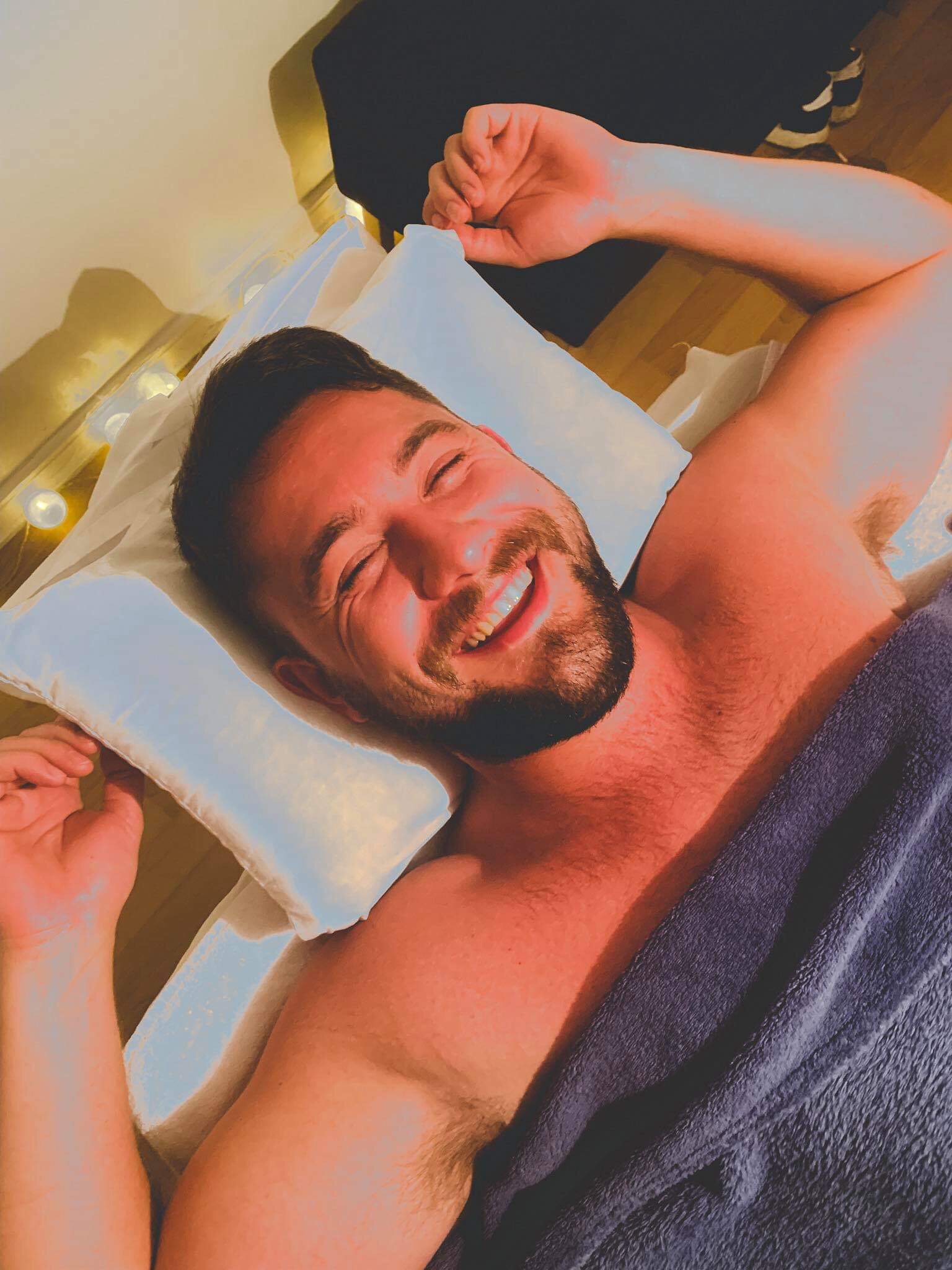 We covered the whole body; kneading away at the back, working out the knots from the arms, shoulders and legs and then finishing by caressing the neck and scalp. The feeling was heavenly. Total relaxation; complete and utter chill. After an hour or so and with a quick squirt of oil, Ben was led by the girls and the process was repeated on Hannah.